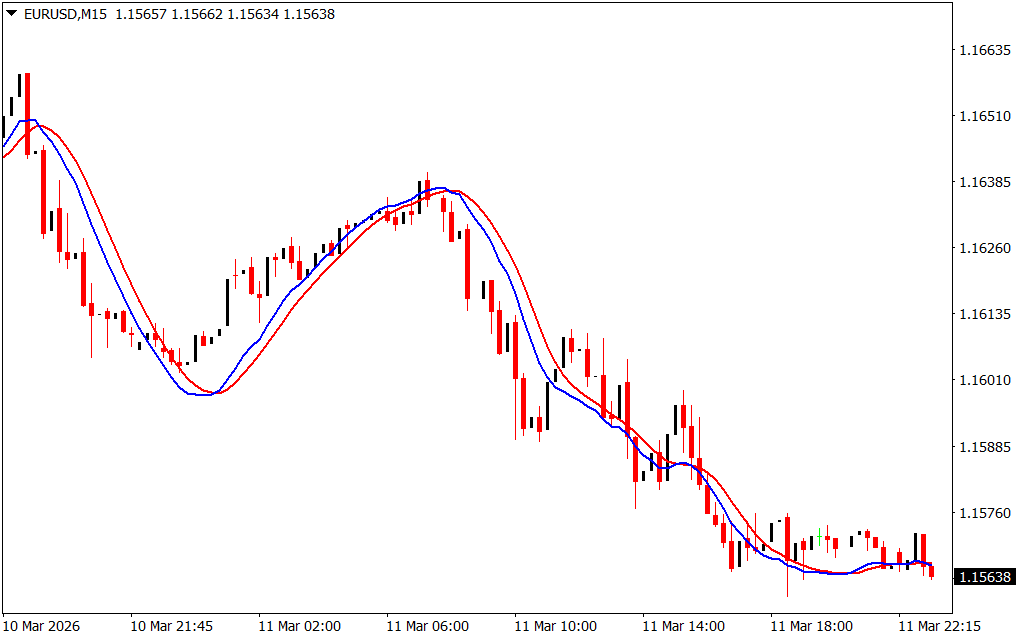 - Fast MA (Blue line) – reacts quickly to price changes