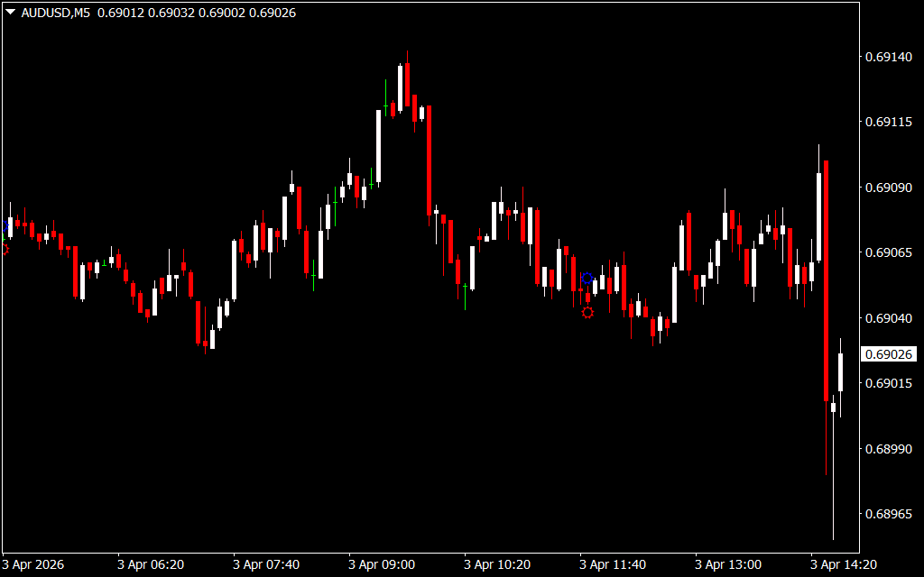 - Visual Signals: Plots a red circle for sell stops and a blue circle for buy stops.
