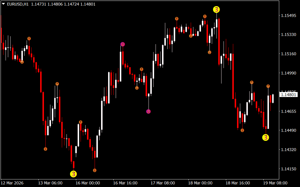 - Three-Level ZigZag System: Detects short, medium, and long-term trends