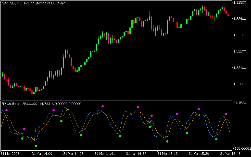 The 3D Oscillator Indicator for MT5 is an advanced version of the traditional stochastic oscillator. It consists of two lines — %K and %D — where %K represents the current market position and %D is a moving average of %K. Together, they generate signals that help traders identify potential entry and exit points. Like the standard stochastic, the 3D Oscillator works across all timeframes, though longer timeframes provide more reliable signals by reducing market noise.