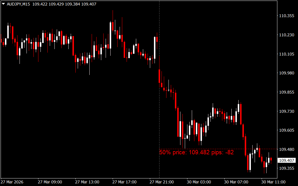 In static mode, the indicator calculates price movement based on the daily opening price. It displays two key levels:
