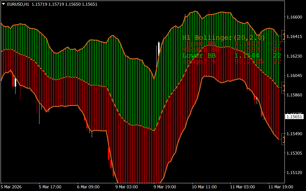 - Red Bars Below Mid-Band – Indicate a sell zone, signaling bearish momentum.