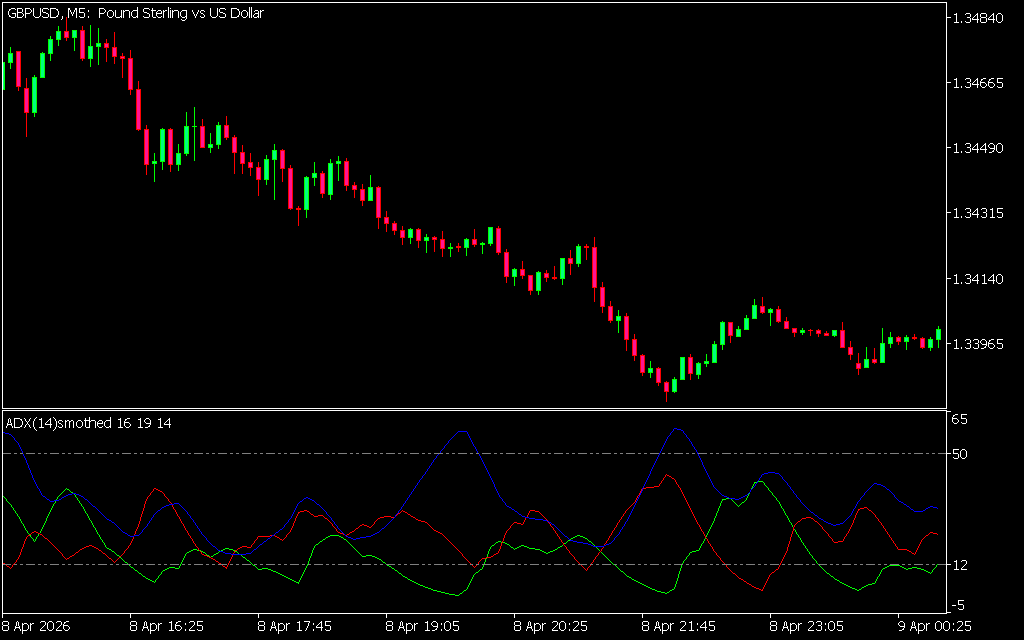 The ADX Smoothed Indicator for MT5 is a momentum oscillator that helps traders identify the strength and direction of a trend. Similar to the traditional Average Directional Index (ADX), this version smooths out the signal line to reduce noise and provide clearer trading opportunities. By plotting three lines — ADX, Di+, and Di- — the indicator highlights bullish and bearish crossovers that can be used to enter or exit trades.