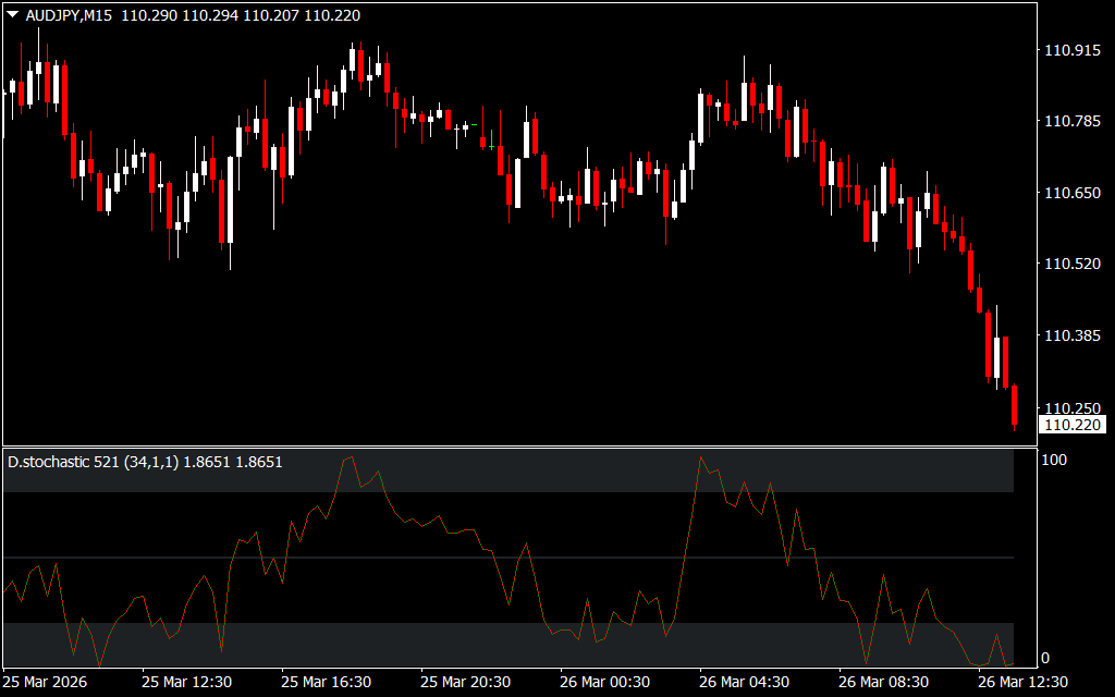 - %D Line: The slower, smoothed version of %K for Trend Confirmation.