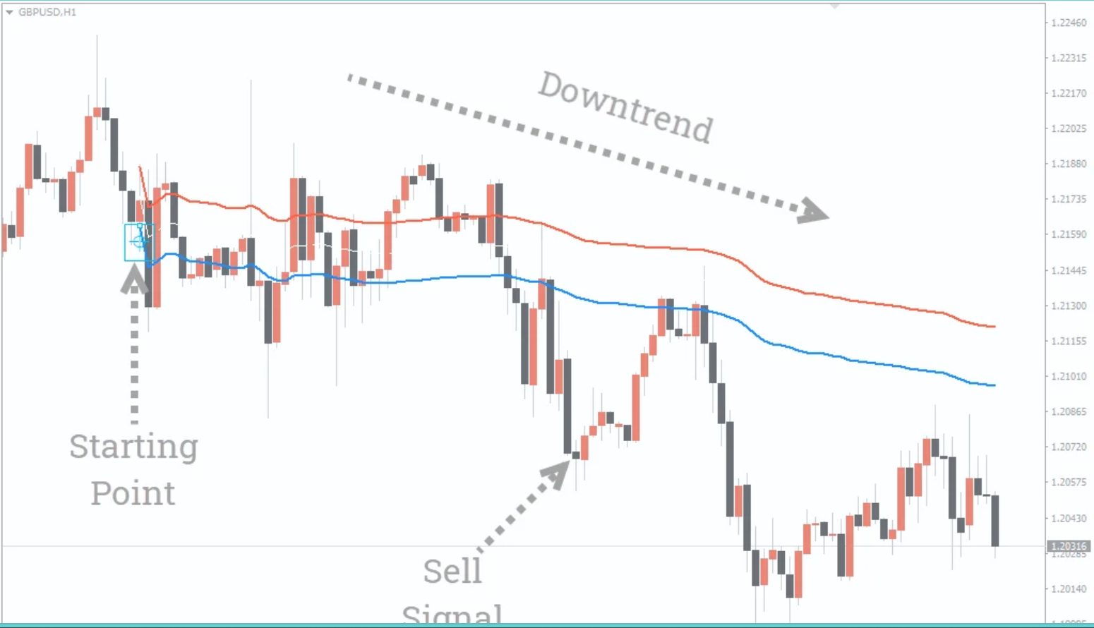 - Bearish Signal: When the price trades below the channel lines, the market is bearish.