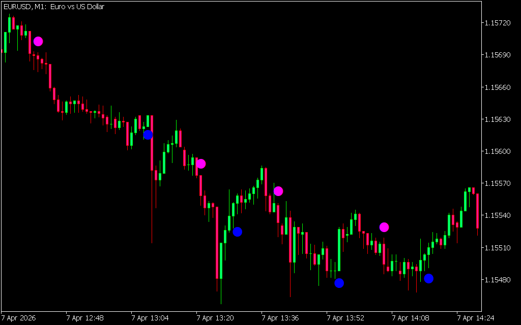 The ASC Trend Indicator for MT5 is a simple yet effective trading tool that draws bullish and bearish signals directly on the chart. By marking candles with blue and magenta circles, it helps traders quickly identify potential buy and sell opportunities. The indicator works across all timeframes, though longer timeframes are recommended to reduce false signals.