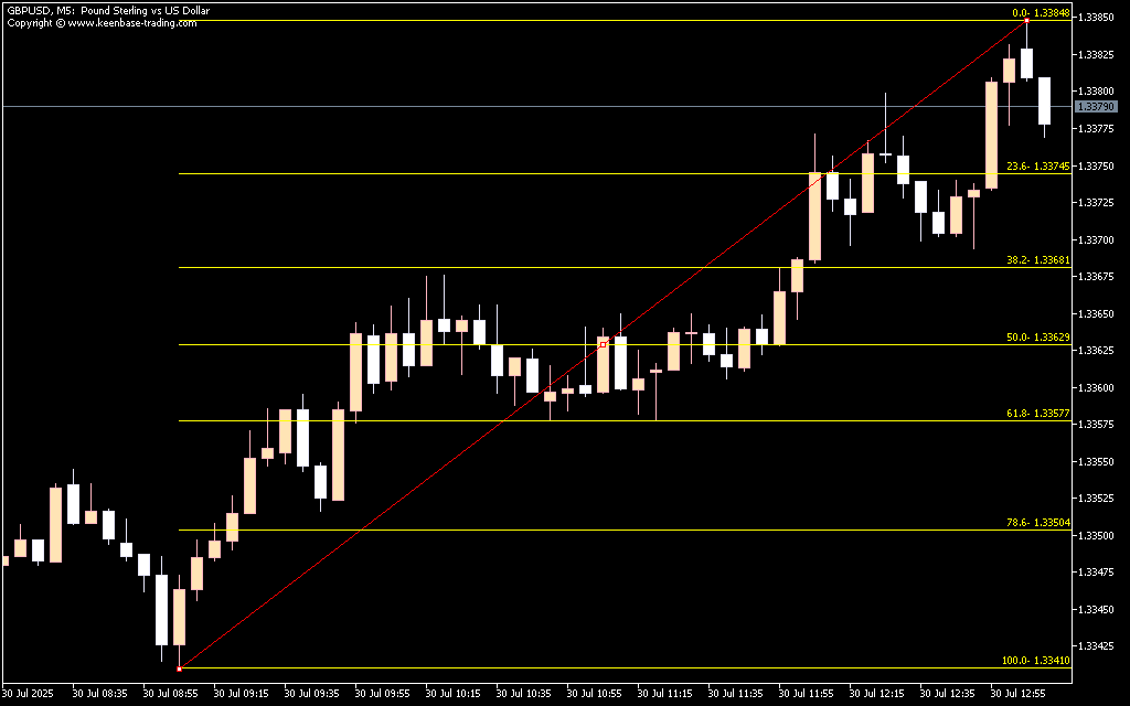 On the EUR/USD 1-hour chart, the Auto Fibo Indicator tracks price retracements past 23.6% and 38.2% levels. As the market pulls back, traders can plan entry points for downtrend positions with stop-loss above recent swing highs. Exits can align with 23.6% or 0% levels, often coinciding with the next support zone. Traders can also use Fibonacci expansion levels to optimize profit-taking.