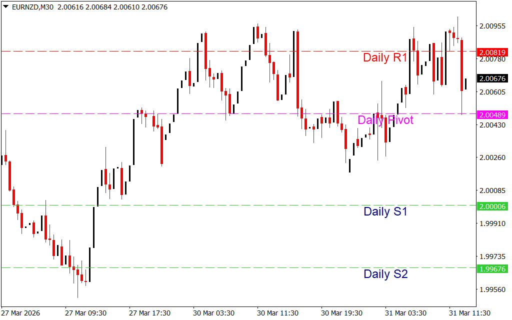- Three Resistance Levels (R1, R2, R3) – Potential selling zones