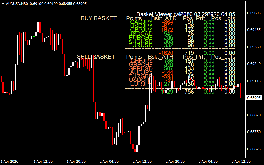 The Basket Viewer Indicator for MetaTrader 4 (MT4) is a practical tool that allows traders to view and manage all their trades in a single window. By consolidating trade information such as order type, volume, and profit or loss, it provides a clear overview of trading activity. This makes it especially useful for traders running multiple strategies simultaneously.