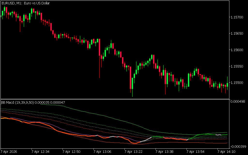 - Bollinger Bands: Surround the MACD line to measure volatility.