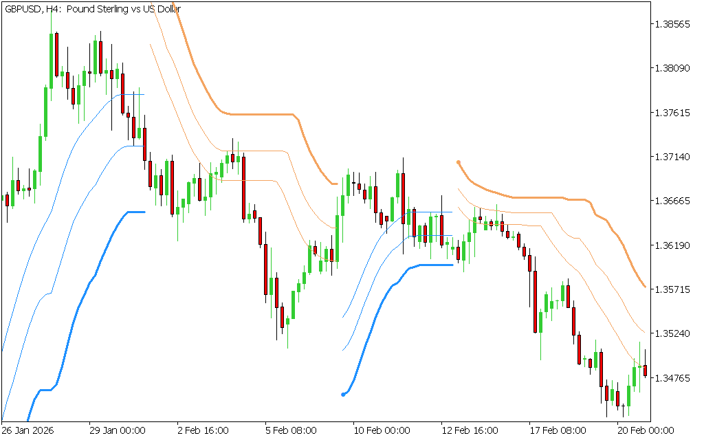 - Strength Indicator: Distance of dots from candles reflects Trend Strength.