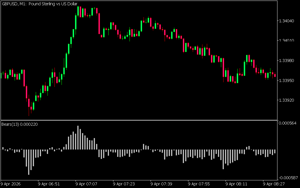 The Bears Power Indicator is the opposite of the Bulls Strength Indicator, designed to measure the strength of bears in the market. By analyzing supply relative to demand, this MT5 Trend Indicator helps traders anticipate potential sell signals across forex, stocks, and cryptocurrencies.