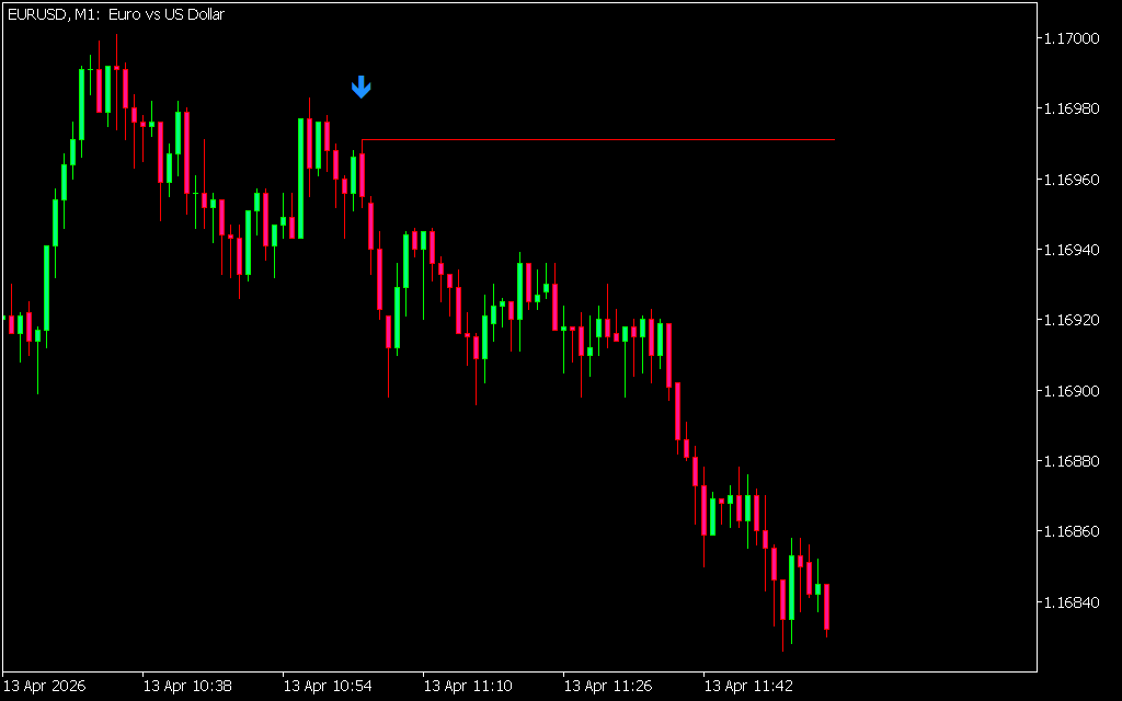 - Indicator detects a bearish pattern (e.g., bearish engulfing)