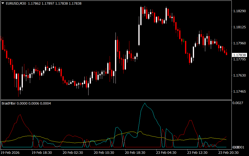 The Braid Filter Indicator for MT4 is a powerful technical analysis tool developed to help traders accurately identify market trends and potential reversal points. By combining multiple moving averages with an intelligent filtering mechanism, this indicator highlights prevailing market conditions and improves trade timing.