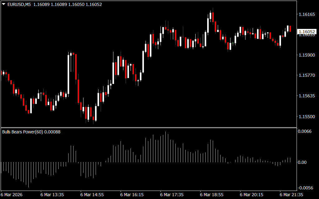 The Bulls Bear Power Indicator for MT4 is a momentum-based tool that helps traders determine the overall trend direction by analyzing the strength of bulls versus bears. Similar in appearance to the MACD oscillator, this indicator plots bars above or below a zero line to indicate market dominance.