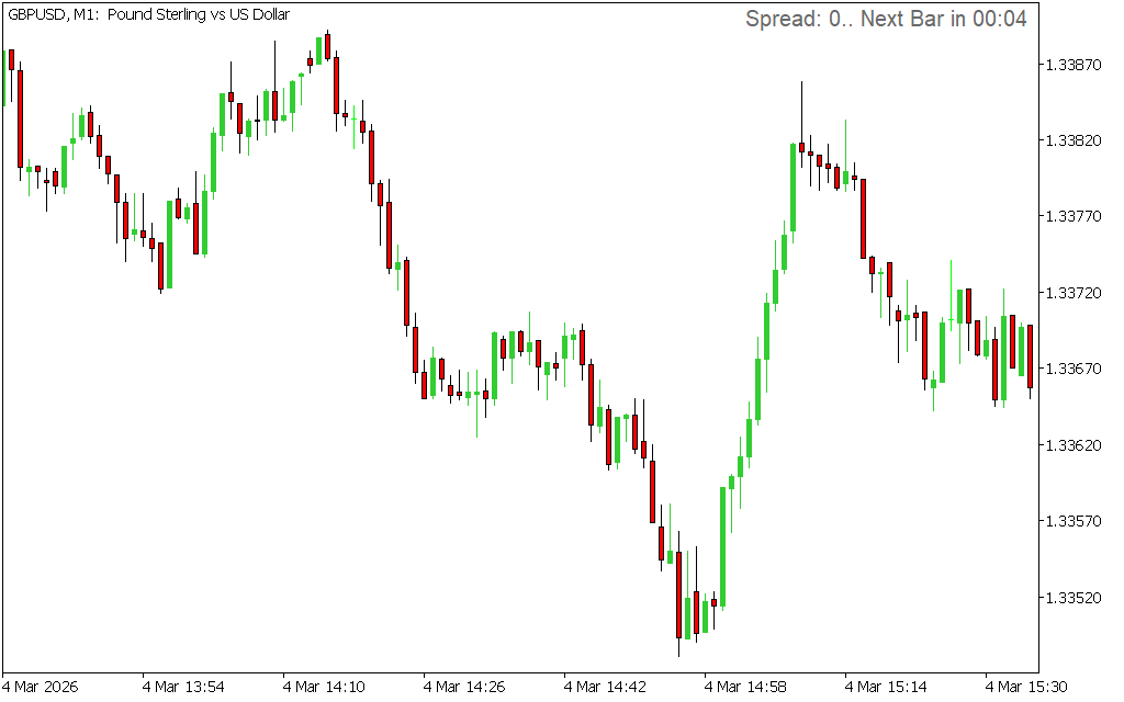 This indicator helps traders stay aware of remaining candle time and current spread, making it especially useful for scalpers and intraday traders.