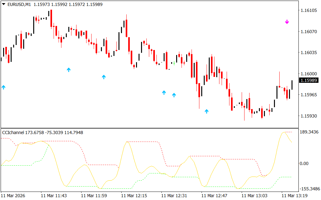The CCI Channel Indicator is an automated trend signal tool designed for MetaTrader 4 (MT4). It helps traders identify strong market momentum shifts and generates real-time buy and sell signals directly on the chart.