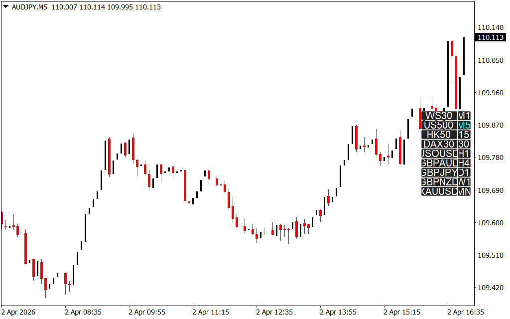 - Timeframe selection lets traders switch chart periods without manually adjusting each chart.