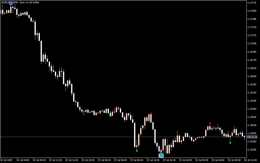 The Chaos Semafor Indicator generates signals based on price swing points: