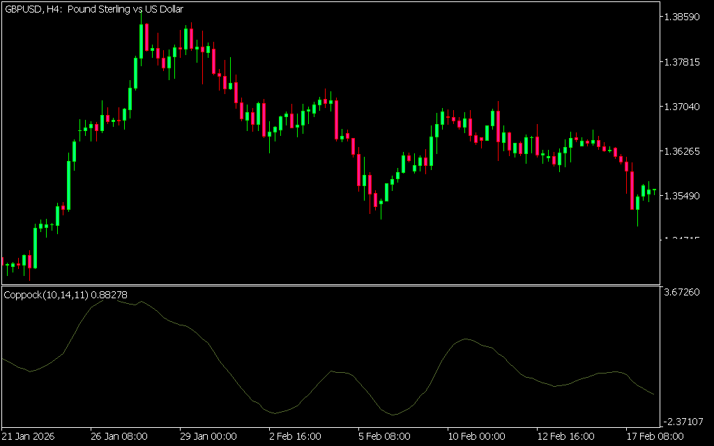 The Coppock Indicator is a classic momentum oscillator developed by economist Edwin “Sedge” Coppock in 1965. Interestingly, it was originally commissioned by the Episcopal Church as a tool for long-term investment analysis in the stock market. Designed to identify buying opportunities, the Coppock curve smooths momentum data to highlight potential reversals and trend continuations. While traditionally used on daily charts for long-term positions, traders today also apply it to intraday forex markets.
