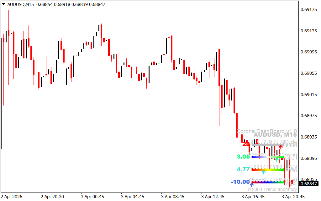 For example, if the Cycle Period shows the start of a bullish trend, the Swing Position confirms upward momentum, and the Trend Vigor is above 8, traders can confidently enter long positions.