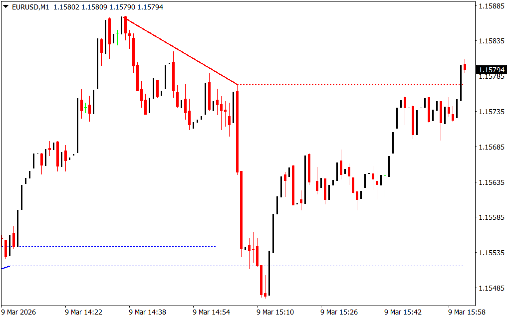 - Bullish Trend: A blue line appears below the price with no red line above. Enter a buy position and place a stop loss below the previous swing low or the blue extension line. Exit based on risk-reward ratio or opposite signals.