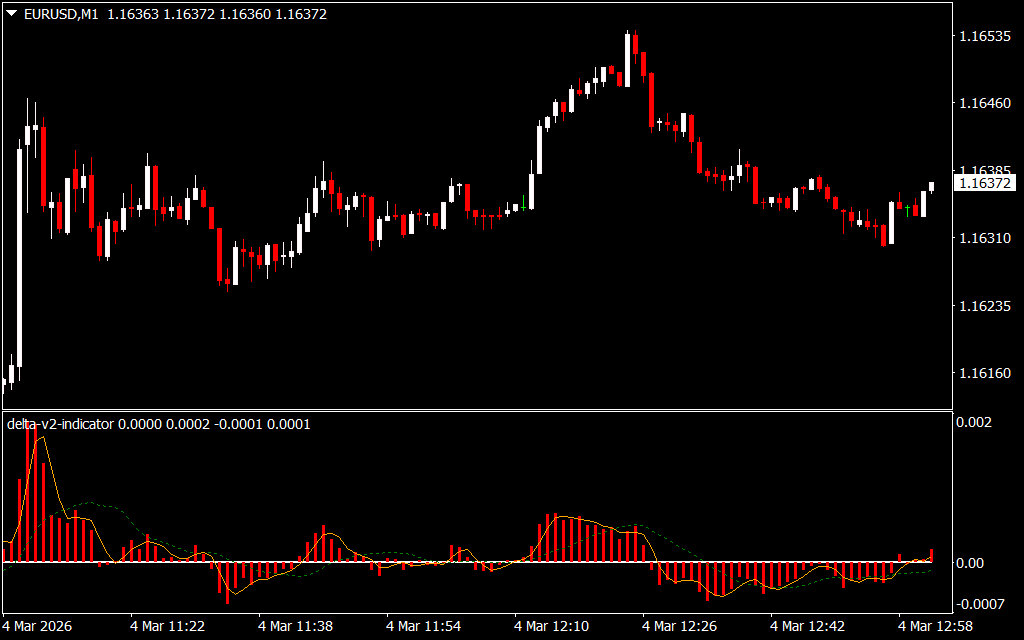 The Delta V2 Indicator for MetaTrader 4 is a volume-based technical analysis tool designed to measure the difference between buyer and seller pressure. By calculating delta volume, the indicator helps traders determine trend direction and detect early signs of momentum shifts.