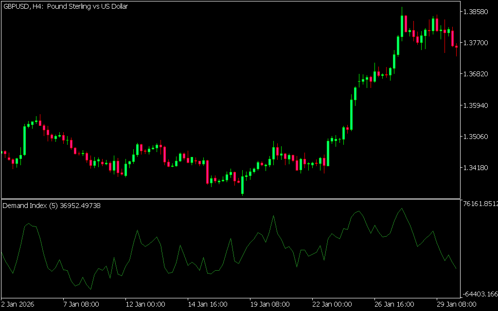 For example, on the EUR/USD H4 chart, the indicator highlighted overbought conditions, signaling a short entry. Later, oversold conditions suggested a bullish reversal and long entry. Traders often combine the Demand Index with RSI or MACD for confirmation.