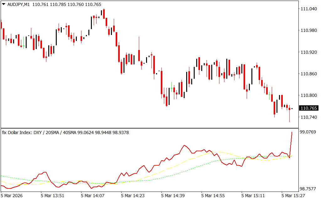 The Dollar Index (DXY) Indicator for MetaTrader is a custom forex tool designed to measure the relative strength of the U.S. dollar in the market. Unlike the standard MT4 U.S. dollar chart, this indicator automatically analyzes the dollar’s trend and displays it directly on your MT4 chart, helping traders predict movements in currency pairs influenced by the dollar.