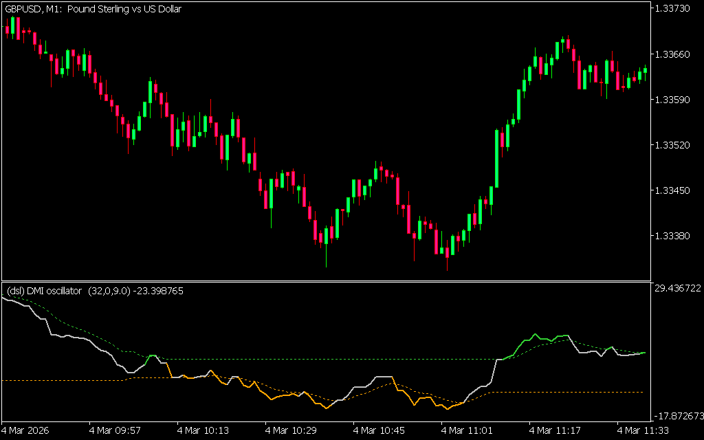 The DSL DMI Oscillator Indicator for MT5 is a reliable tool for identifying market direction and momentum using DI+ and DI− values. It helps traders filter out noise, reduce false signals, and improve trade timing.
