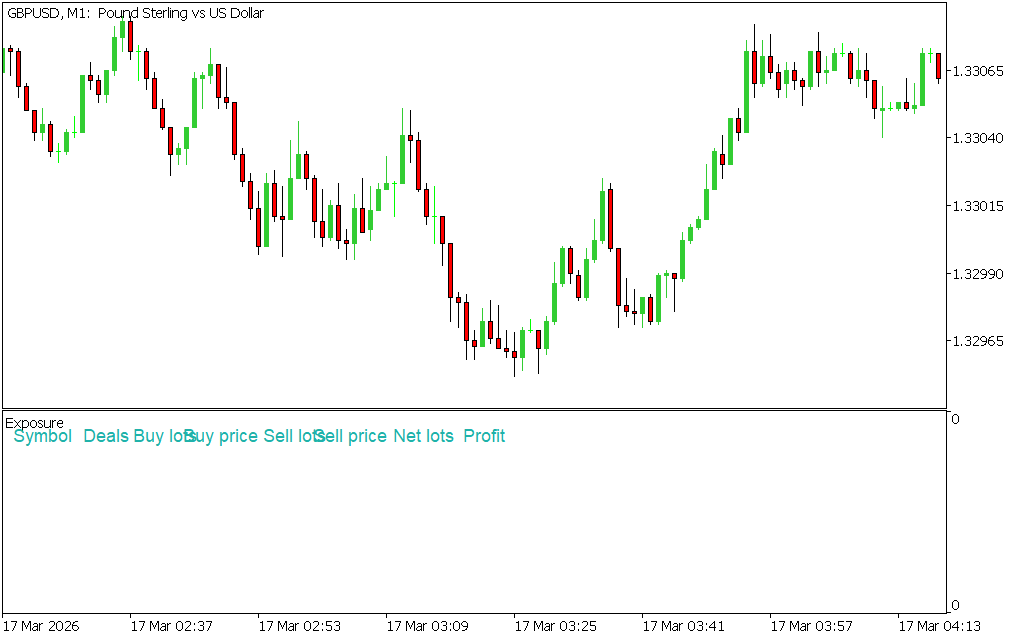 The Exposure Indicator is not a technical analysis tool for predicting market direction. Instead, it focuses on trade monitoring and risk tracking by pulling data from your trading terminal and displaying it visually on your chart.