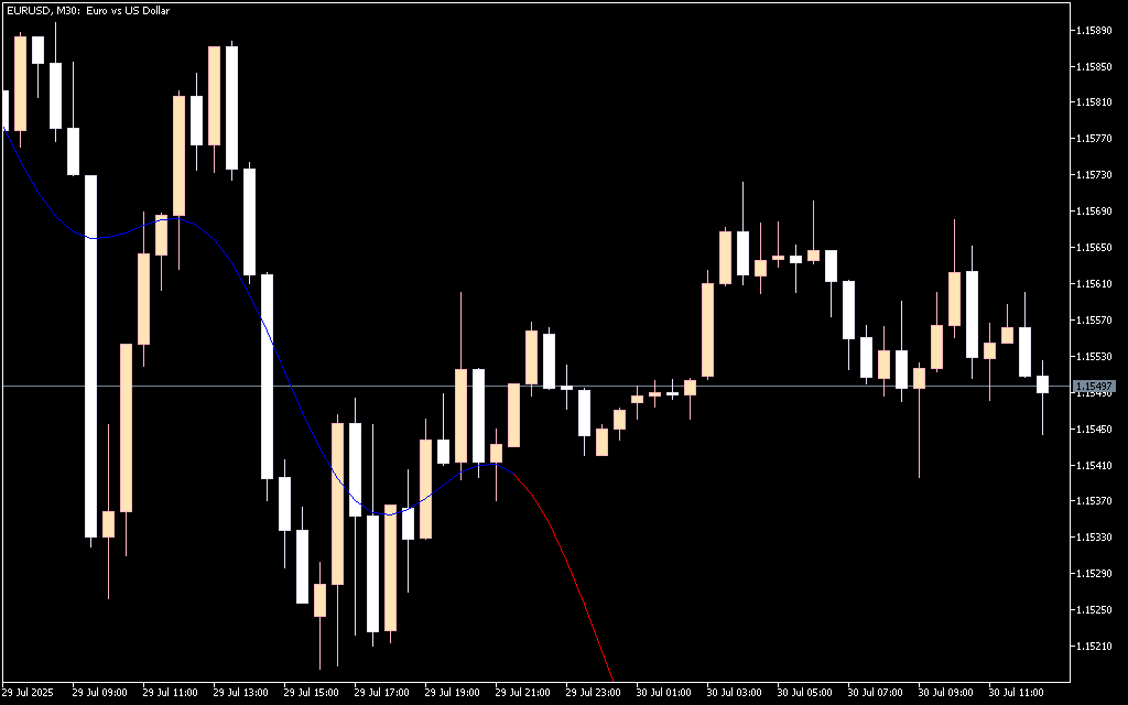 - Blue line: Shows the current market trend