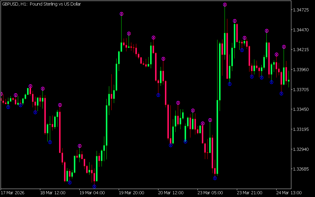 These markers indicate potential turning points where price may reverse direction.