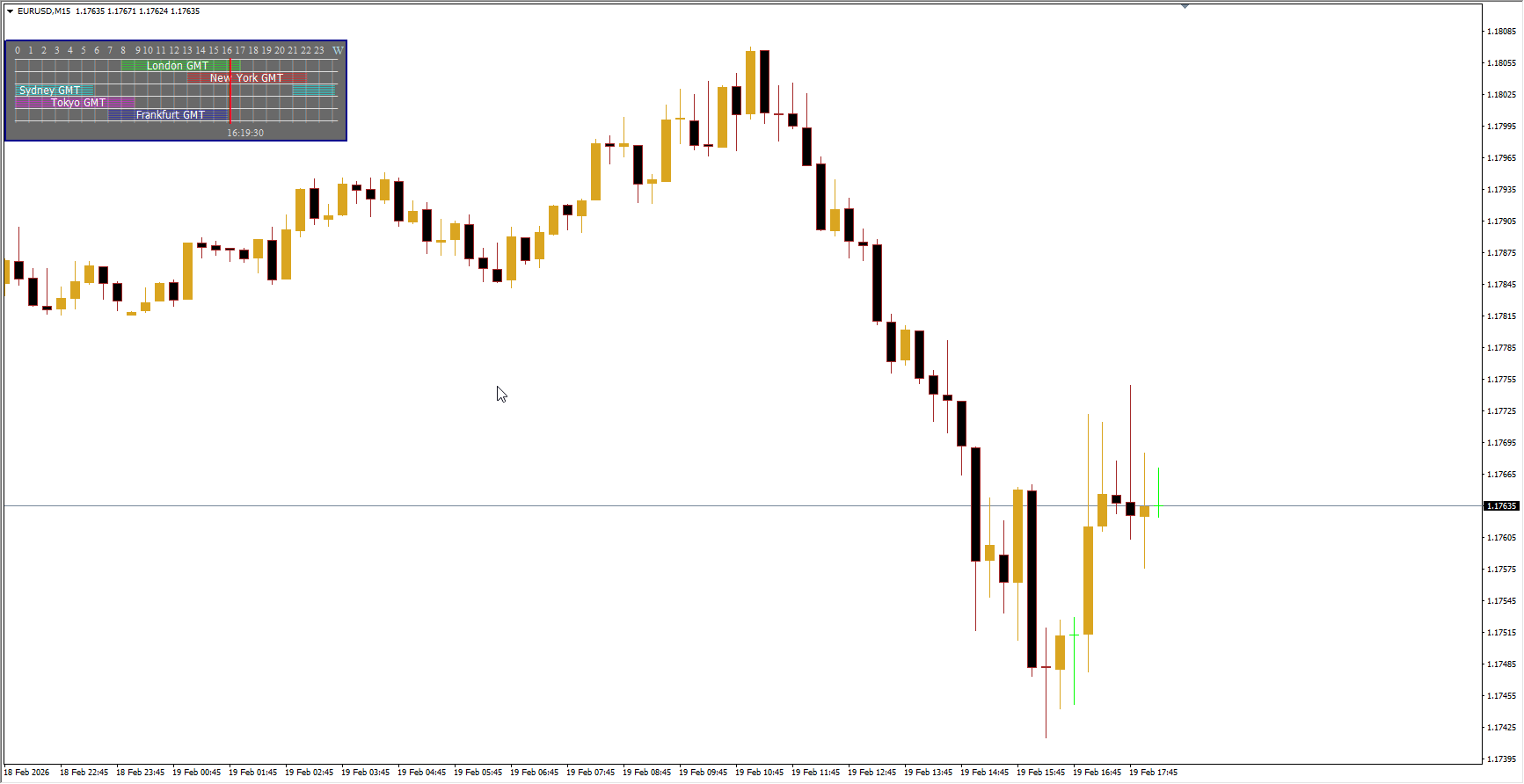 Trading sessions are displayed below the timescale, showing their start and end times.