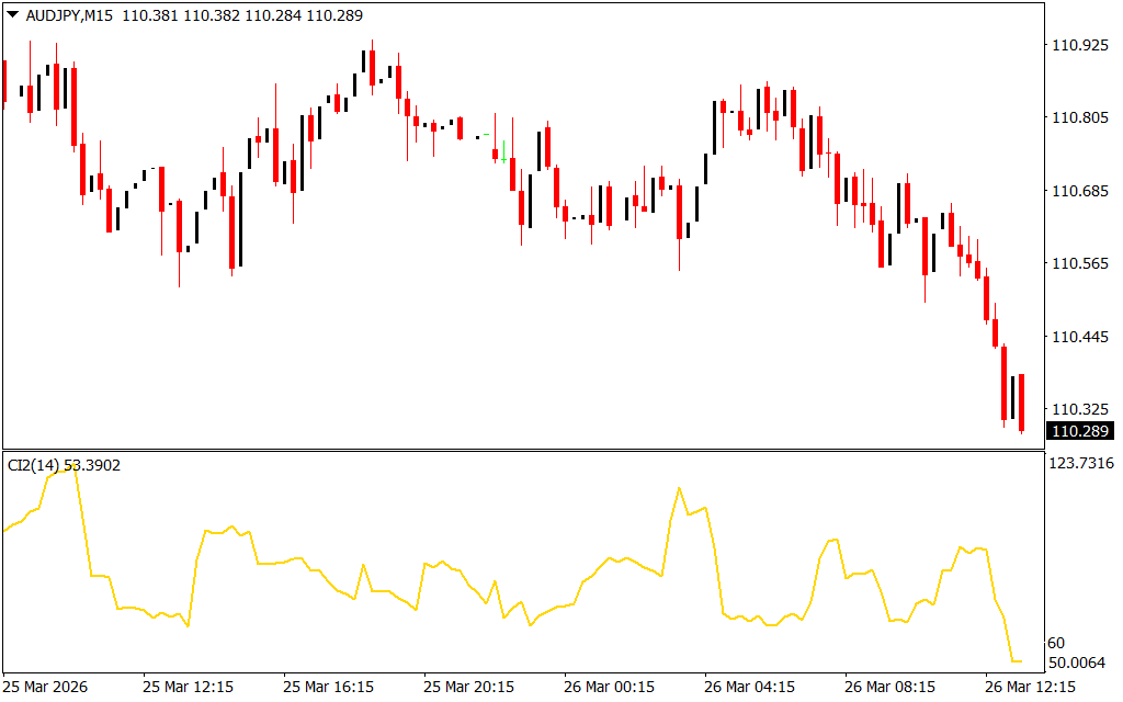 This indicator generates signals using the Commodity Channel Index (CCI) and price movement analysis: