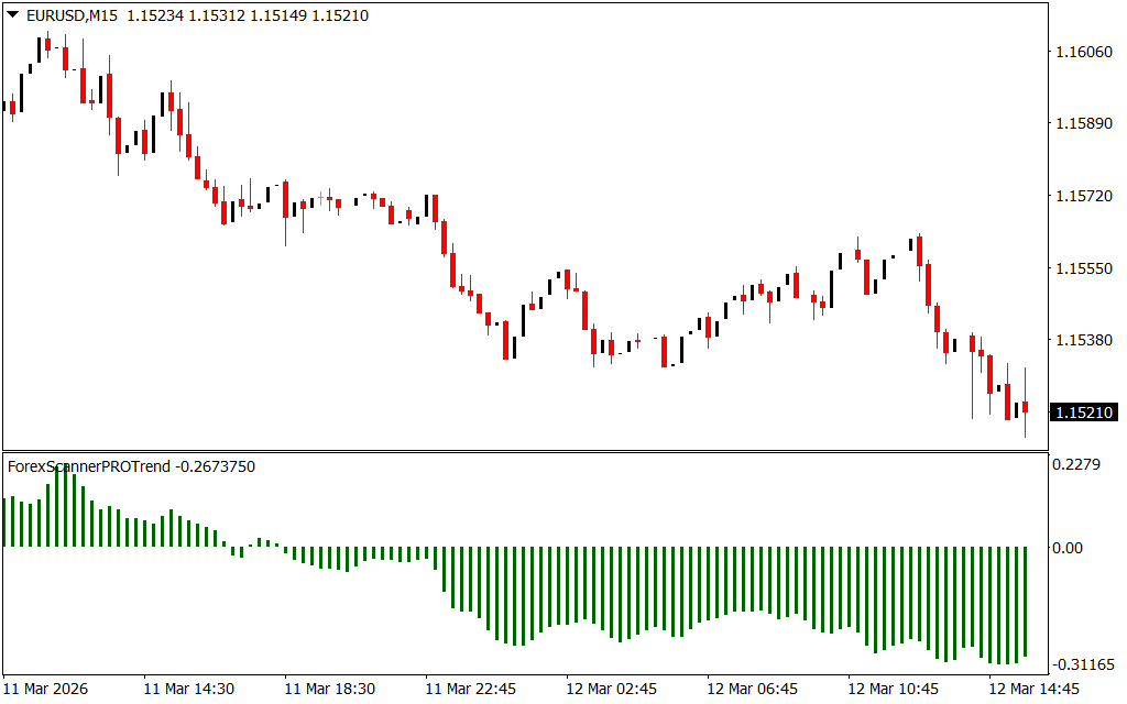 The Forex Scanner Pro Trend Indicator for MT4 is a reliable trend-following tool that helps traders identify bullish and bearish market trends with clarity. Its histogram-based structure provides clear buy and sell cues, while its sensitivity to price dynamics makes it adaptable to various trading strategies.