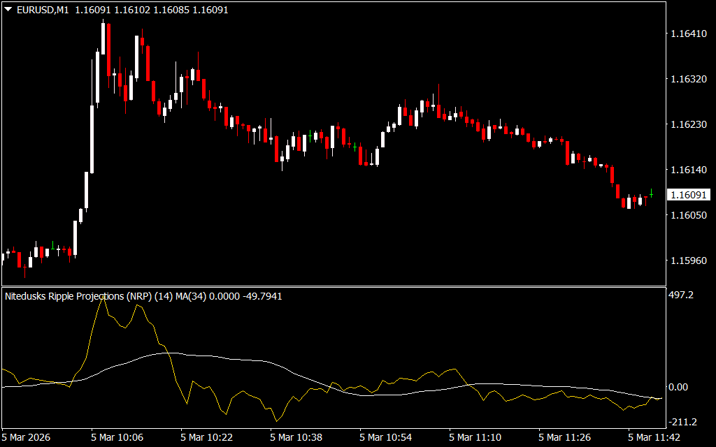 - White Moving Average Line – smooths the signal and helps confirm trend direction.