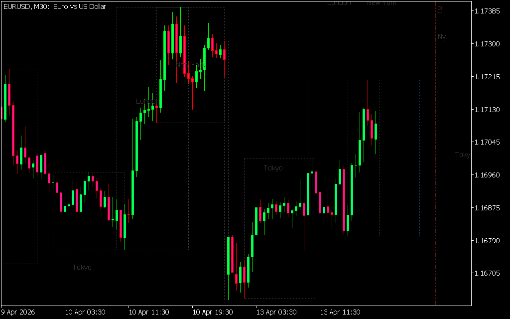 - Displays major trading sessions (Sydney, Tokyo, London, New York)