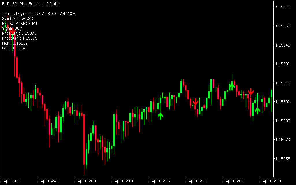 - Automatic Signals: Displays green arrows for buy signals and red arrows for sell signals.
