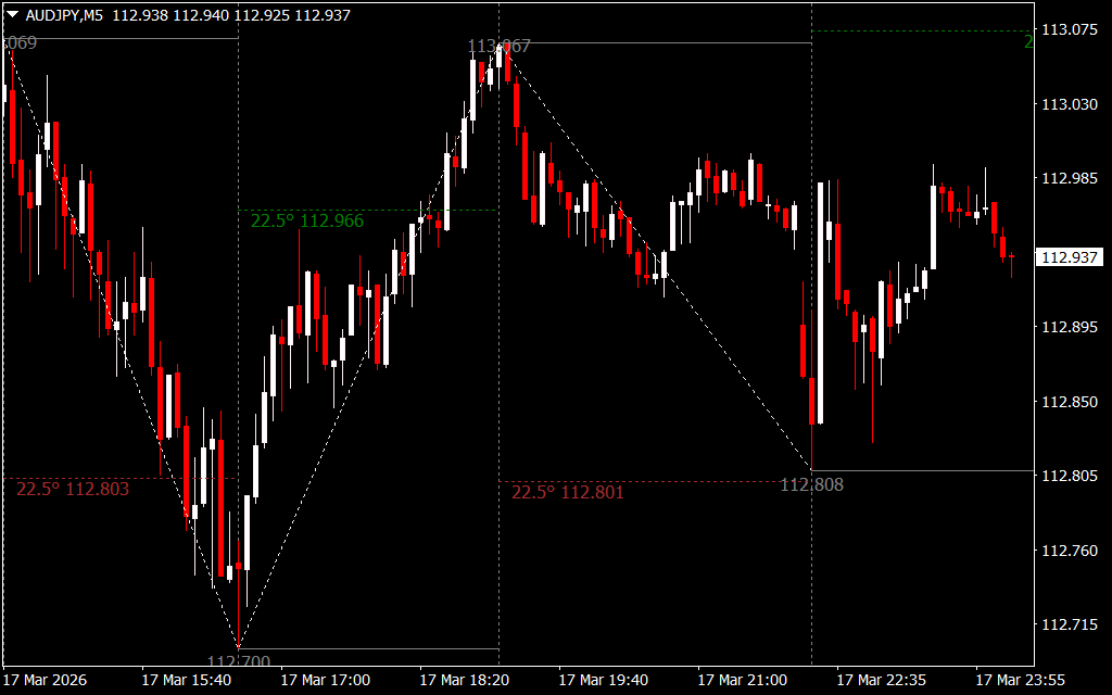 - Predicts future support and resistance levels based on Gann principles.
