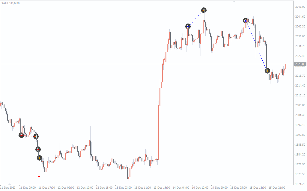 Gold Miner EA generates signals by analyzing candlestick structures and volatility surges in gold price movement.