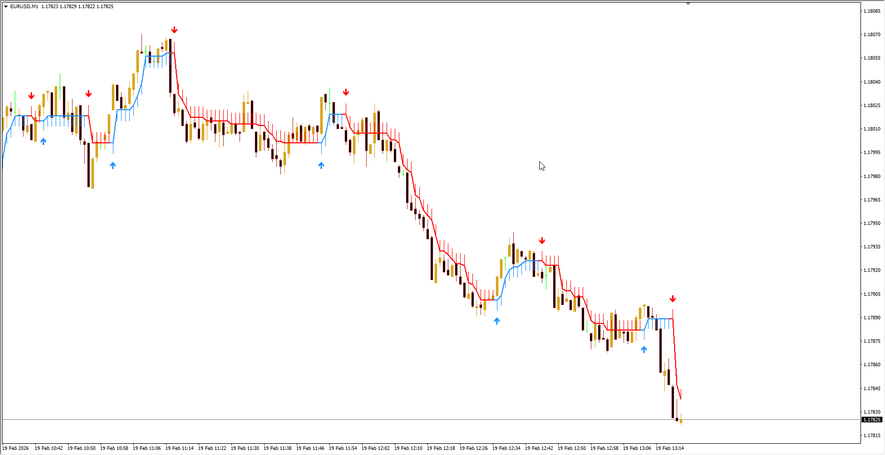 Live Arrow Signals: Blue arrows for BUY, red arrows for SELL.