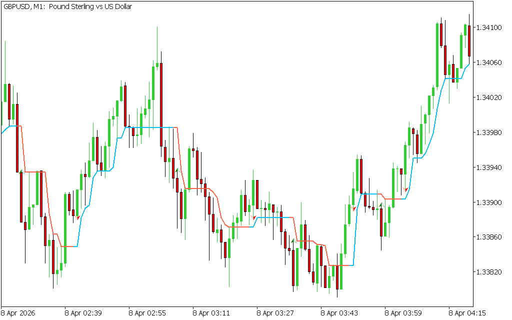 - Arrows: Appear when the signal line changes color, marking potential entry points.