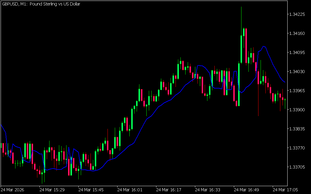 - Bullish Setup: Enter buy trades when the blue line appears below the price, confirming upward momentum.