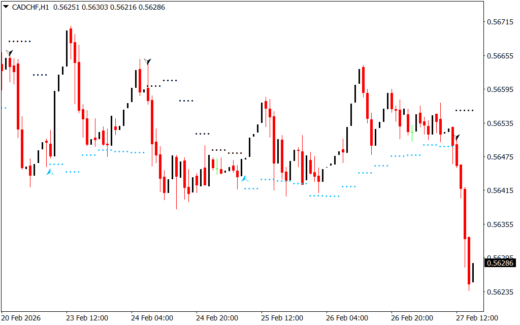 - Dots Above Price – Indicate a bearish trend and potential sell zones