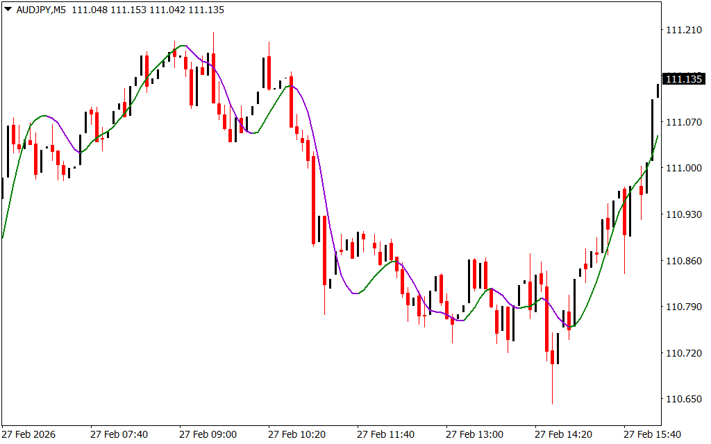 - Bullish signal: Fast HMA crosses above slow HMA → buy