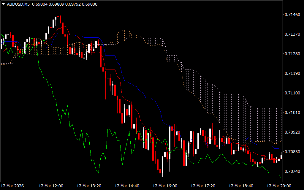 - Chikou Span (Lagging Line) – The current closing price shifted 26 periods backward, used to identify trend momentum.