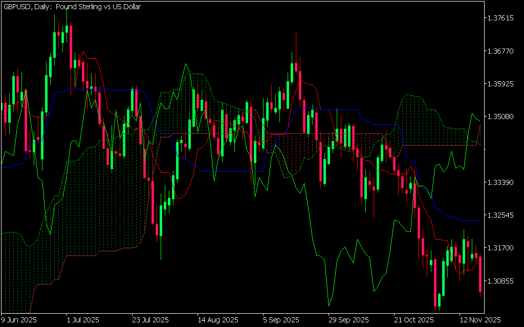 - Price below the Kumo cloud, confirming bearish strength.