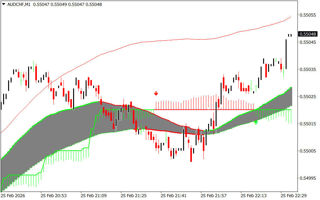 This combination allows traders to identify trend direction, confirm momentum, and manage risk effectively — all from a single indicator.