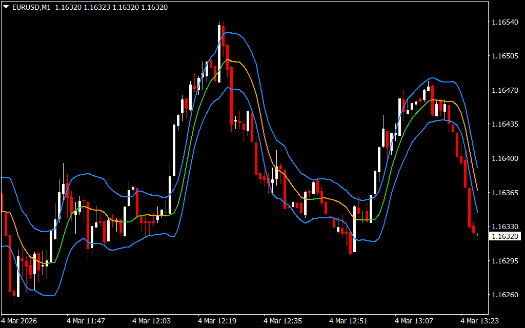 The Kaufman AMA Averages Filtered ATR Bands indicator enhances this by adding ATR bands, which act as dynamic Support And Resistance zones for potential reversals.